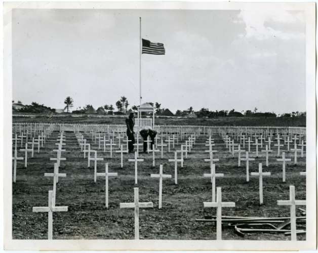 U.S. Flag over cemetery in Okinawa