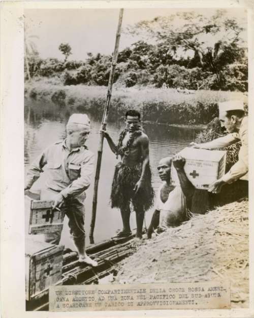 The Red Cross field director attached to an isolated outpost helps unload a consignment of supplies