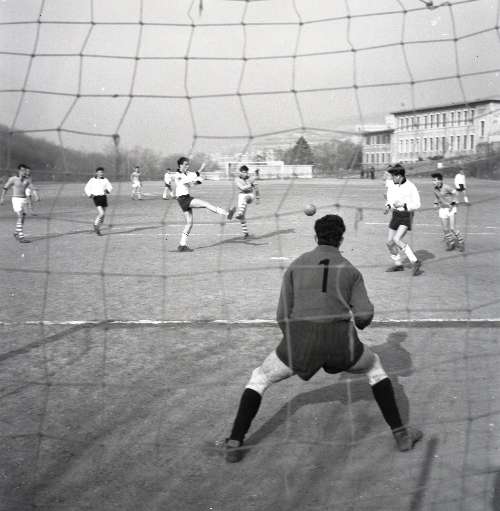 squadre calcio minore (campo ILVA) e spettatore teddy-boy