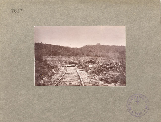Rotaie ferroviarie preso il km. 14,5 per il trasporto delle munizioni, durante la guerra di Redenzione 1915-18