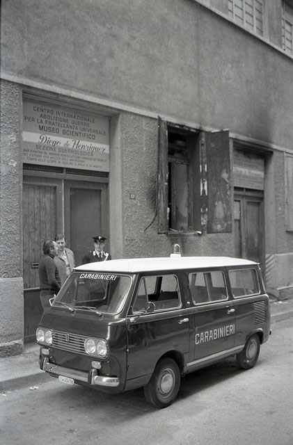Carabinieri davanti al Museo de Henriquez incendiato