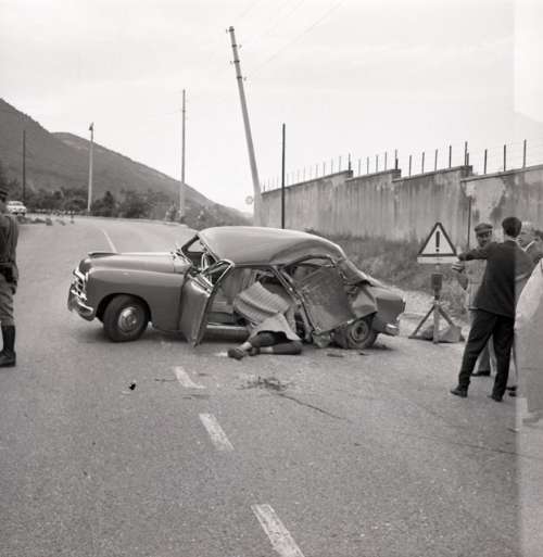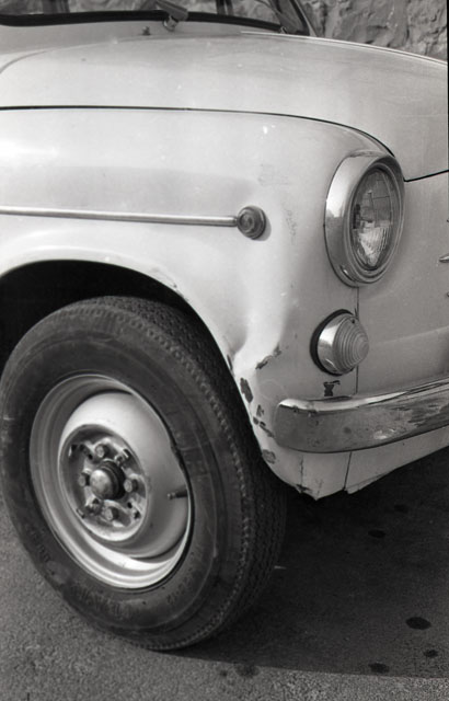 Automobile Fiat 1100 danneggiata