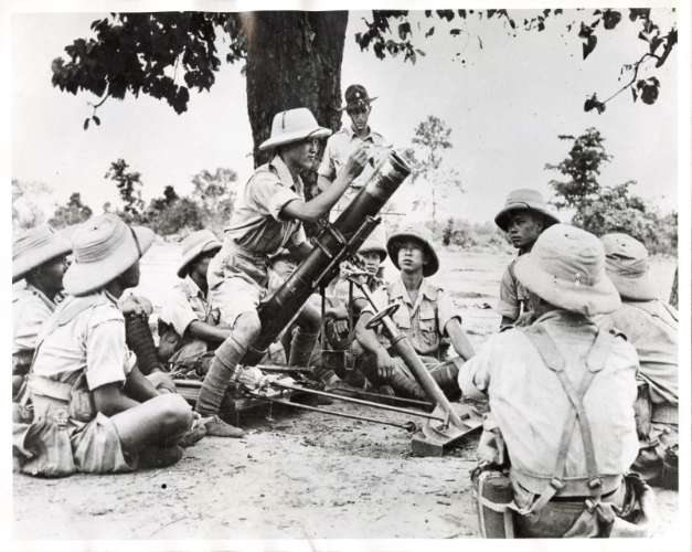 Chinese instructor explains the use of the mortar to a chinese mortar unit