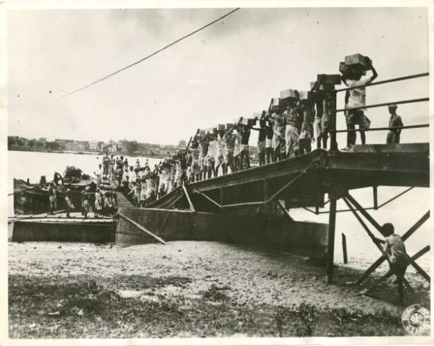 Soldati indiani impegnati in attività di costruzione