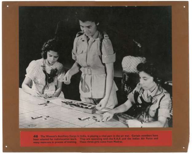 The Women's Auxiliary Corps in India, is playing a vital part in the air war. Certain members have been selected for radiolocation work. They are operating with the R.A.F. and the Indian Air Force and many more are in process of training. These three girls come from Madras