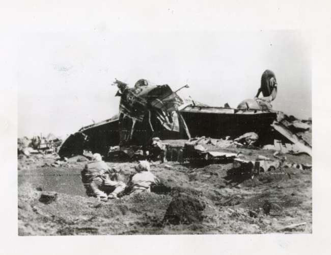 Torrette, trincee, sbarramenti anti carro nell'isola di Iwo Jima per impedire lo sbarco americano che ebbe luogo il 19 gen. 1945 e che segnò una delle battaglie più sanguinose di tutte le operazioni del Pacifico