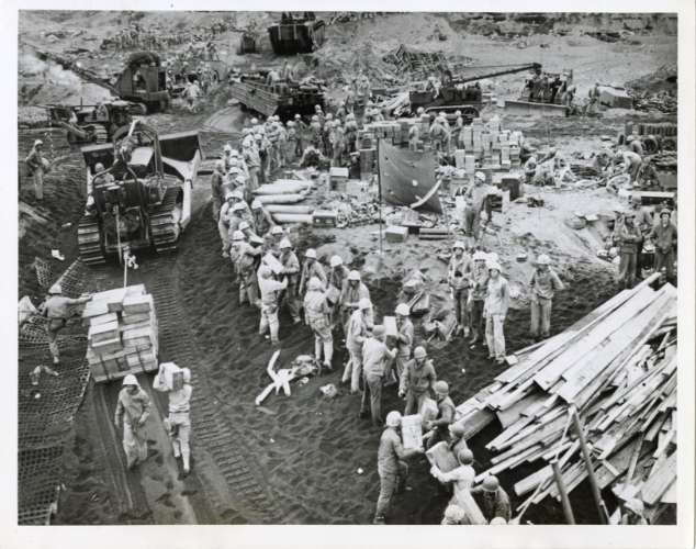 U. S. Marines unload supplies on Iwo Jima