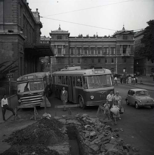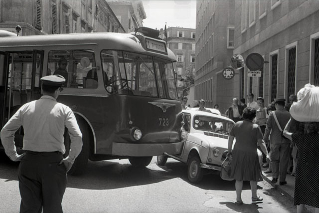 Filovia n. 20 appena estratta dal mare e rimessa sulla carreggiata presso Muggia