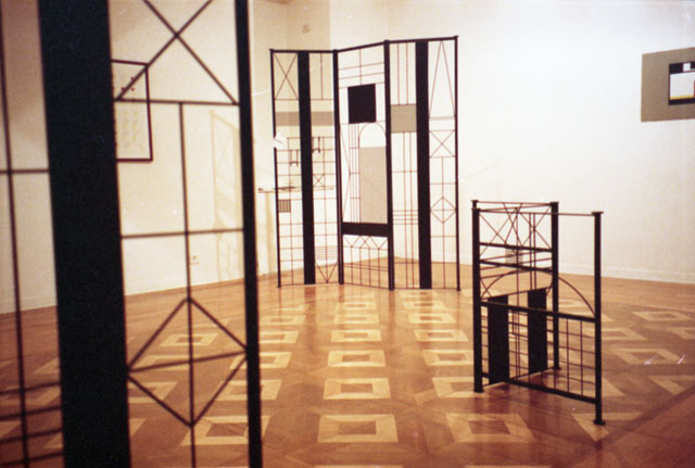 Allestimento della mostra di Bruno Munari presso la Galleria Bassanese