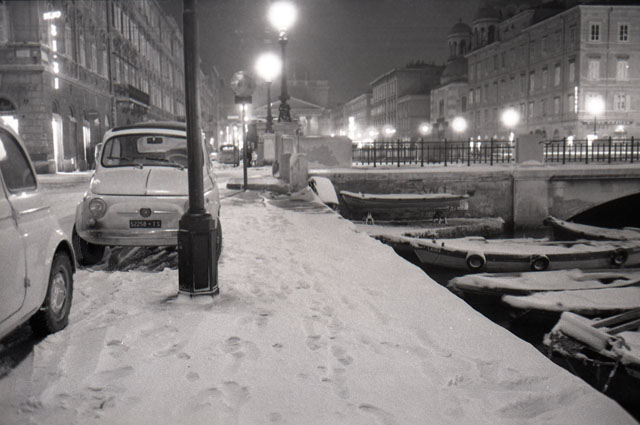Brutto tempo, neve a Miramare, Barcola, Gretta. Cassetti, cravatte. EZIT. Cosolini. Alunni Nautico. Museo del Mare.