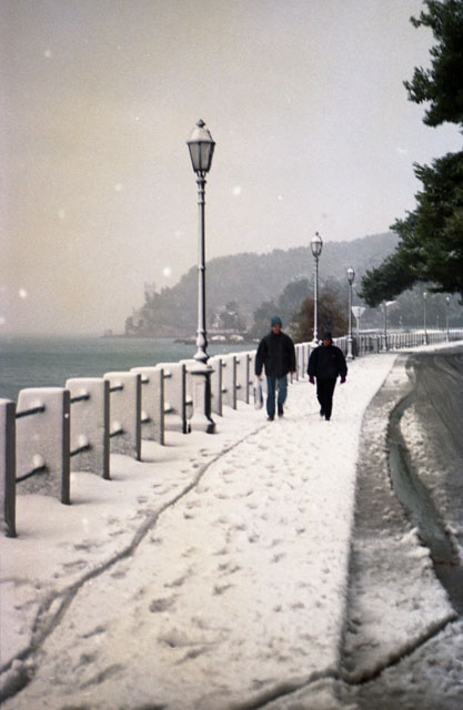 Brutto tempo, neve a Miramare, Barcola, Gretta.