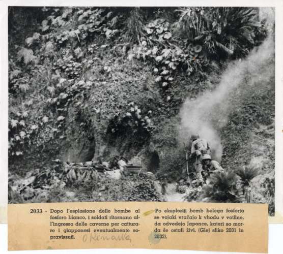 Dopo l'esplosione delle bombe al fosforo bianco, i soldati ritornano all'ingresso delle caverne per catturare i giapponesi eventualmente sopravissuti