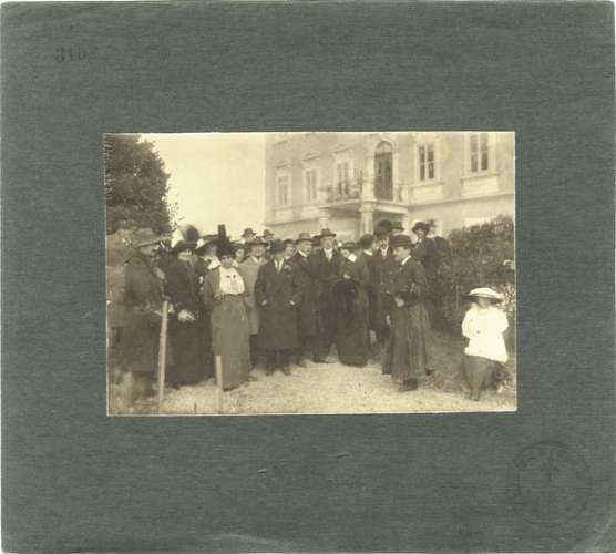Sem Benelli e altri giornalisti nel giardino di Giorgio Polesini : Parenzo, 15 marzo 1913