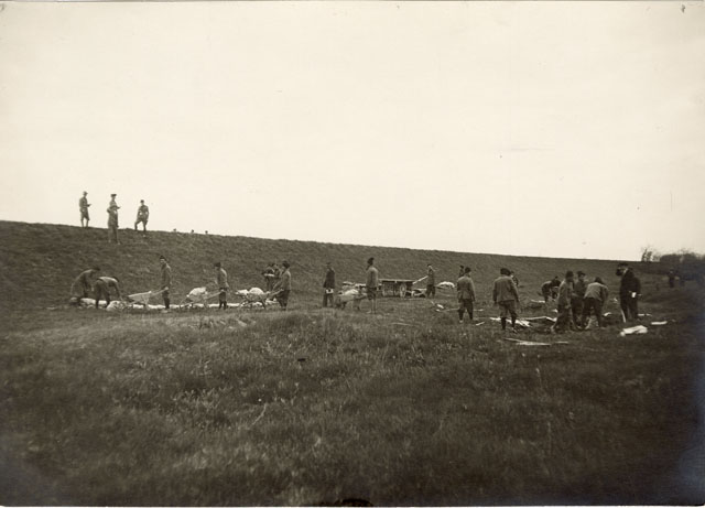 Pieris Turriacco. Sugli argini dell'Isonzo. Fascisti in esercizio. Insaccano la sabbia per arginare un supposto straripamento del fiume Isonzo