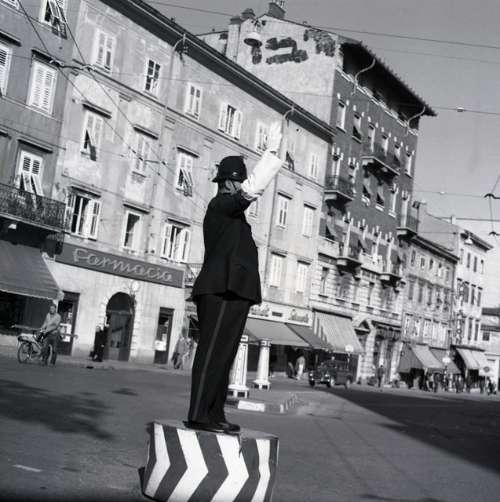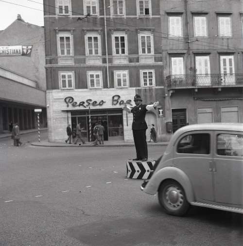 Demolizione cinema Nazionale ; vigili urbani tra viale XX settembre e via Rossetti