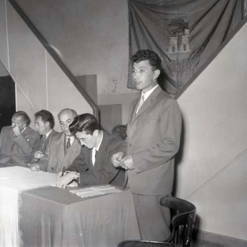 Piero Malvestiti con moglie Catalanotti. Centro prima accoglienza profughi via dell'Istria. Lavori in viale. MF. comunista. Scavi stream. Bambina al bar. Nave porta container.