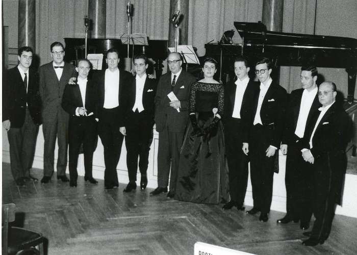 Pavle Merkù, Carlo de Incontrera, Roberto Repini e Adriano Vendramelli con altri al Primo concerto di Arte Viva