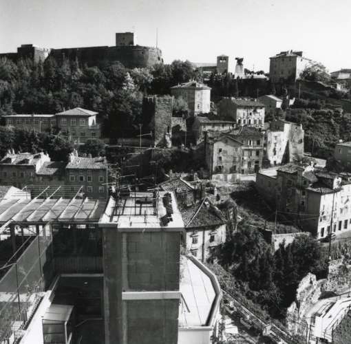 Il melone acroterio di arenaria, sormontato dall'alabarda