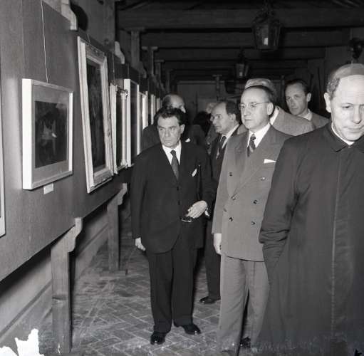 Serie Italia. preparazione de Il Piccolo del 26 ottobre 1954 ; Manifestazioni di entusiasmo della folla ; Benedizione a San Giusto