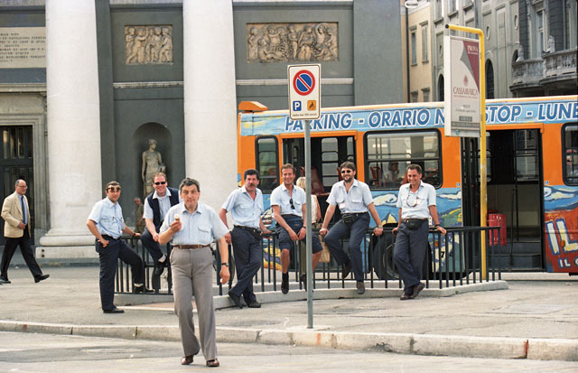 Questore tribunale, 1992. Vigile urbano, centro chiuso, 1992. Calcio, Italia campione del mondo, piazza Unità, giovani tifosi, anziani, gioco delle carte. Consiglio comunale, 1992. Ladi Minin, Sgarbi, Suban, Piazza Unità, sciopero taxi, protesta catene. Piazza della Borsa, camera di Commercio. Statua Leopoldo I, 1992. Protesta contro Illy. 118 elicottero, Barbacini.