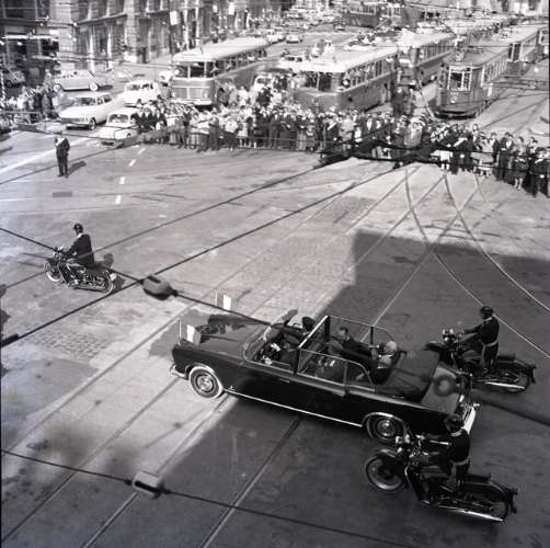 Numerosi mezzi Acegat sostano in p. Goldoni per il passaggio del presidente Segni