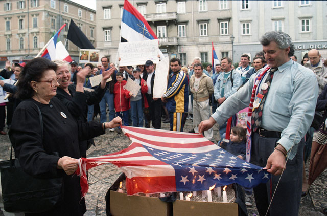 Protesta serbi, piazza Sant'Antonio, contro intervento americano.