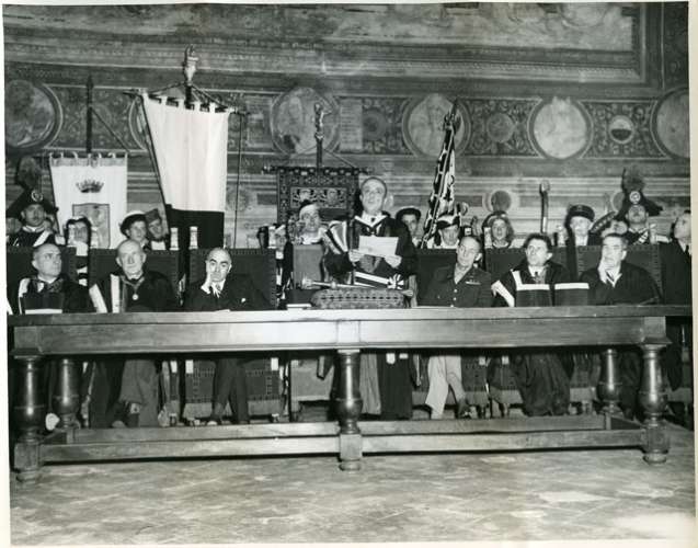 REOPENING OF UNIVERSITY OF SIENA. THE NEW RECTOR OF THE UNIVERSITY OF SIENA, PROF. MARIO BRACCI, IS SHOWN ERE OFFICIATING AT THE REOPENING CEREMONY.