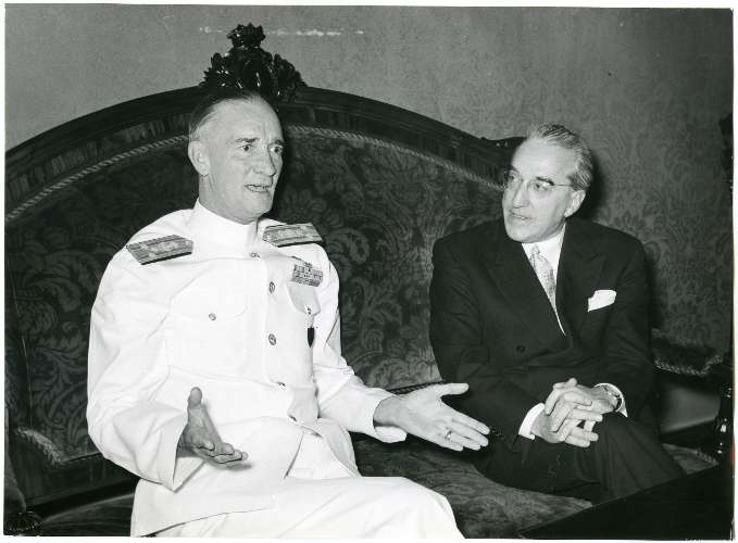 8 giugno 1953 ; Visita del sindaco Gianni BARTOLI all'ammiraglio John Cassidy : comandante della VI flotta americana di incrociatori
