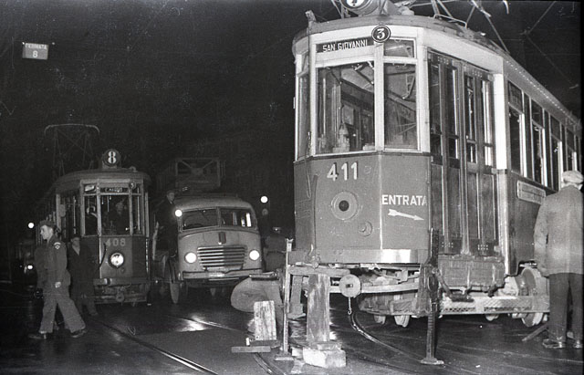 Tram n. 9 uscito dalle rotaie