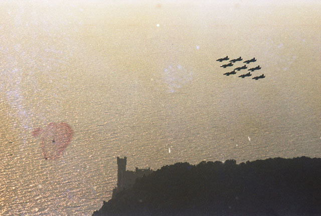Samer, Marconi, Aliscafo Calarossa, stazione marittima. Frecce Tricolori, 1999, riviera di Barcola.