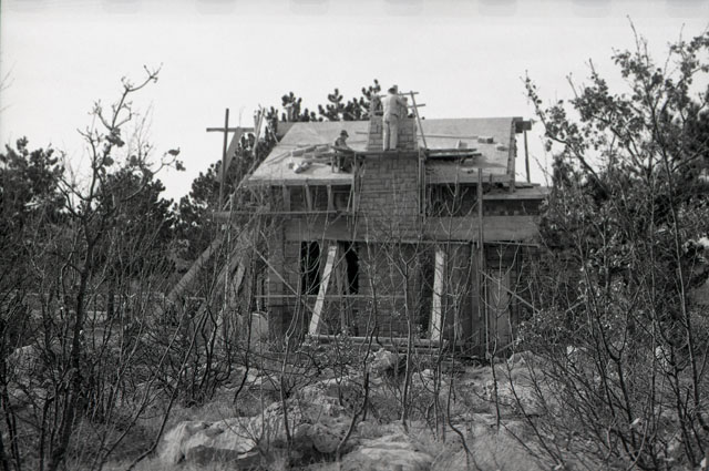 Palazzina in costruzione all'ingresso della Grotta Gigante e case O.A.P.G.D. a Santa Croce
