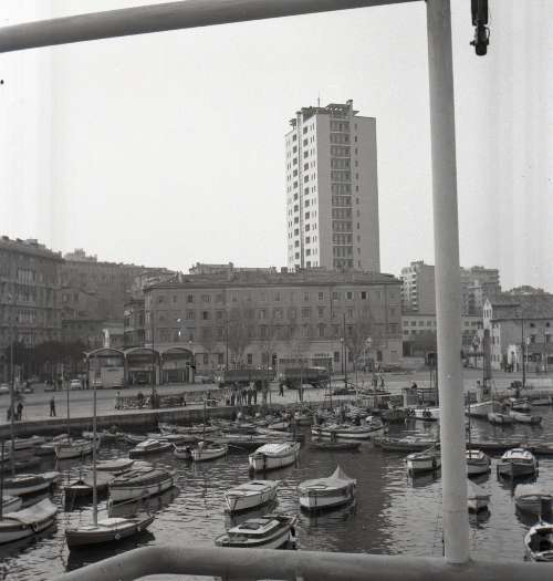 Molo a martello in sacchetta e veduta verso grattacielo Campo Marzio