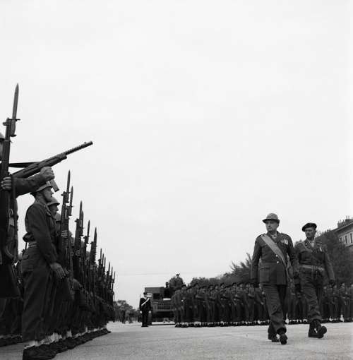 Celebrazione 3 novembre 1918 in Piazza Unità : dottor Mattucci, Generale Rossini, Ministro Segni