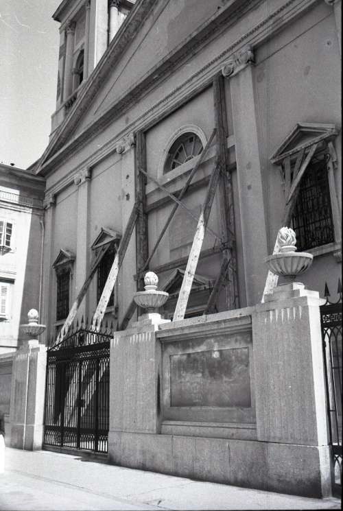 Puntelli alla facciata della Chiesa Greco Ortodossa