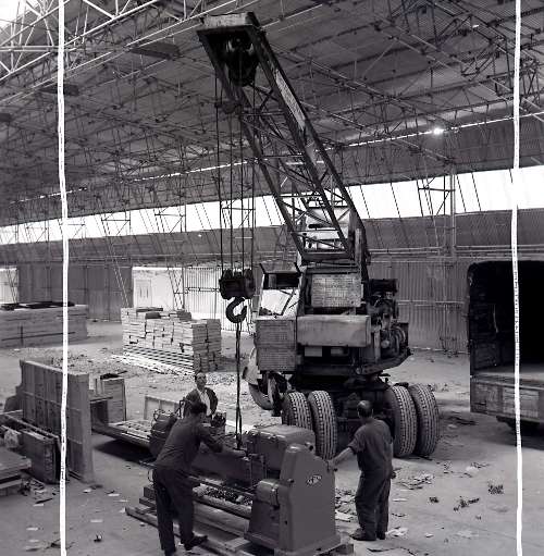 Fiera di Trieste: gru carica merce su autocarri per ditta Parisi