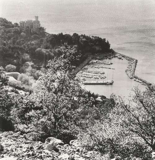 Piazza dell'Unità e colle di San Giusto al tramonto visti dal mare