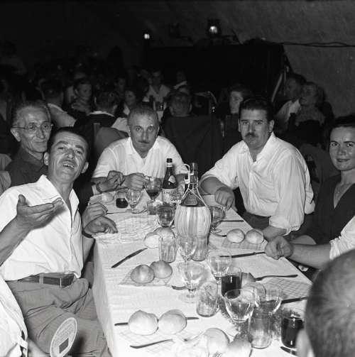 Fiera di Trieste, 1952 : Coppia e gruppo di amici a tavola