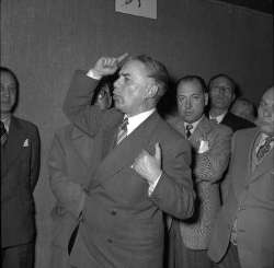 Orchestra della Scala : V. de Sabata : arrivo, ricevimento municipio, concerto