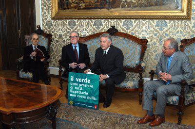 Giorgio Rossi assessore e Ludovico Della Palma presidente del Rotary Club Trieste presentano l'iniziativa "Il verde bene prezioso di tutti. Rispettarlo non costa nulla" : Trieste : 2003
