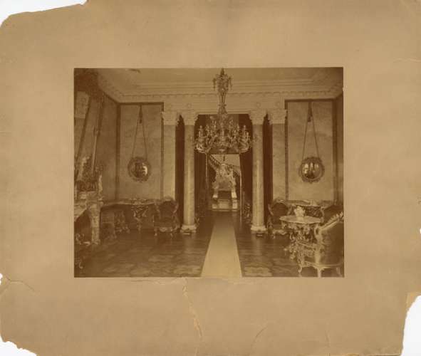 Arciduchessa Stefania del Belgio moglie di Rodolfo d'Asburgo con dame di corte e conte Carlo Bombelles : scalinata del Castello di Miramare