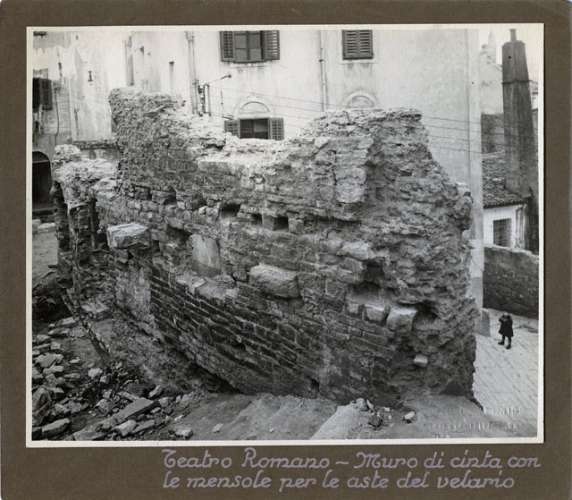 Trieste : teatro romano. Muro di cinta con le mensole per le aste del velario