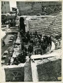 Trieste, scavi teatro romano : rinvenimento della lapide frammentaria di Quinto Petronio Modesto