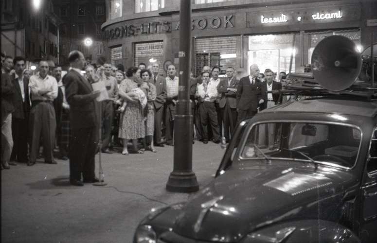 Comizi PCI semideserti in largo Riborgo e via Luciani