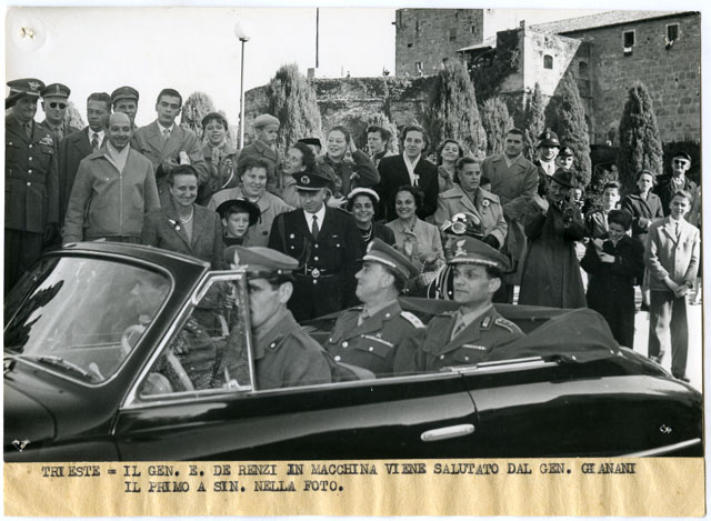 TRIESTE : IL GEN. E. DE RENZI IN MACCHINA VIENE SALUTATO DAL GEN. GIANANI IL PRIMO A SINISTRA A SIN. NELLA FOTO