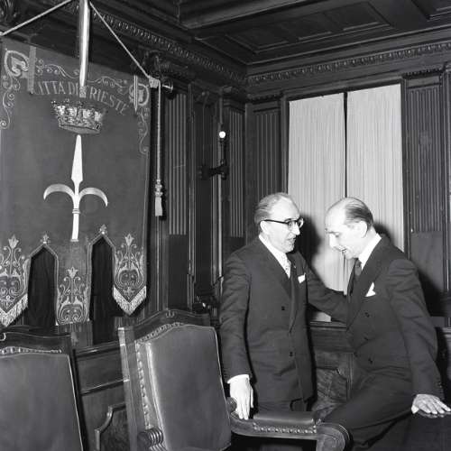 Ambasciatore francese in visita a Trieste in Comune , Hotel Savoia, Curia, Presidio militare
