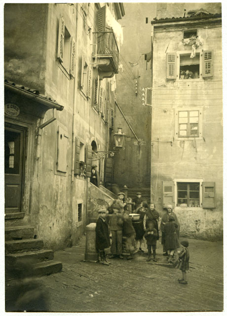 Principio (imbocco) del vicolo S. Chiara, visto dall'Androna della Piccola Fornace