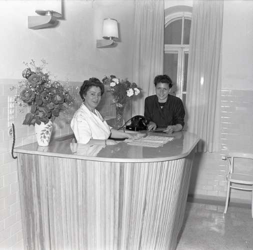 Anni '60 Giorgio Fonzari in ufficio con colleghi ; esercente (bar - pizzeria)