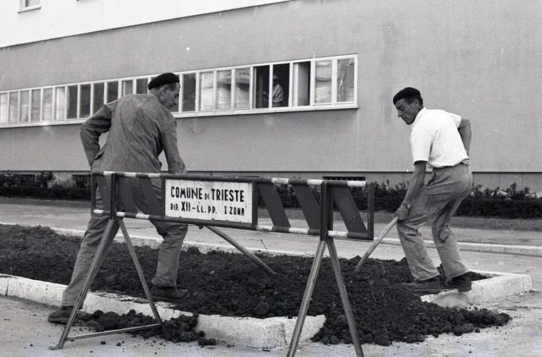 Panchine di viale Miramare, tabella VIII Delegazione Municipale, nuovo gasometro, lavori stradali del comune con transenne