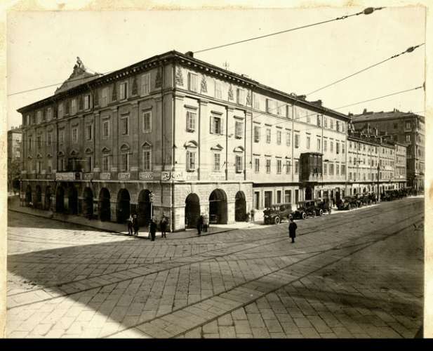 Sala Tripcovich, carrozza, cavalli, portici di Chiozza. Piazza Unità, operai, ferriera. Università, studenti. Tomizza, Turello, Biasutti, tribunale. Negozi, compratori slavi.