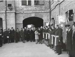 Cerimonia per la sistemazione della scultura "I Martiri" di Marcello Mascherini